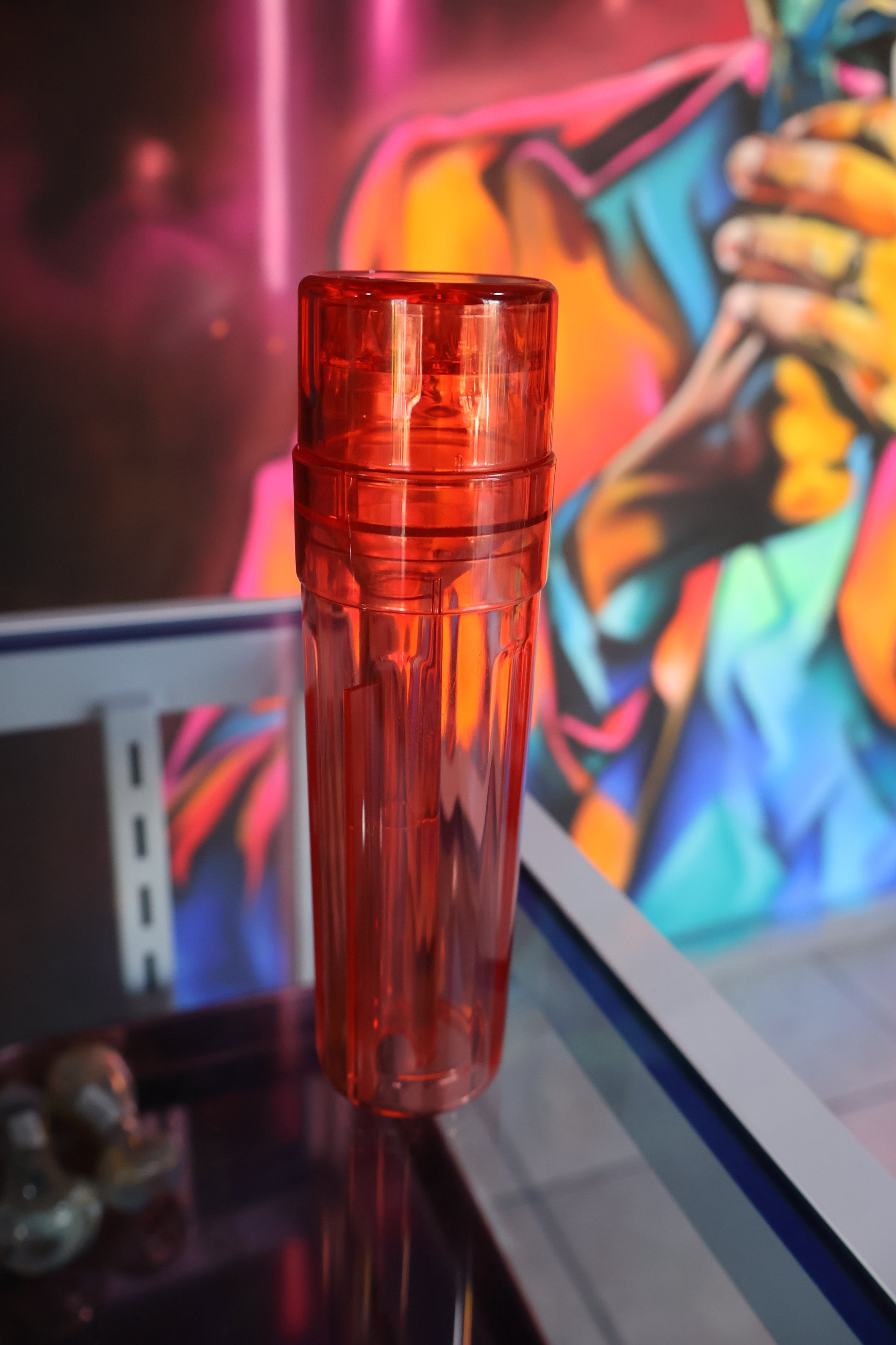 ¡Innovación y practicidad en un solo accesorio! Este grinder acrílico tipo tubo en color rojo translúcido es perfecto para quienes buscan una herramienta multifuncional, discreta y fácil de transportar. Su diseño vertical tipo "shot" incluye múltiples compartimentos y funciones integradas para una experiencia completa.