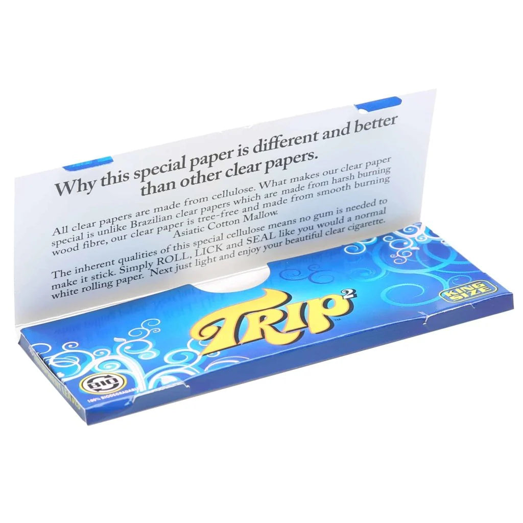 Descubre la experiencia de fumar sin igual con Trip2 Rolling Papers, los papeles transparentes originales. Mejora a los papeles Trip2, más delgados y sin árboles, para una combustión aún más suave y lenta en comparación con los originales Trip2 Rolling Papers. Únicamente diseñados para quemar más lentamente y con menos aspereza que otros papeles transparentes, los papeles claros Trip2 son un cambio revolucionario.La Mejor NaturalezaLos papeles transparentes Trip2 son 100% naturales y 100% libres de árboles, convirtiéndolos en la marca más buscada de papeles de liar transparentes. Disfruta de la bondad natural de los papeles de celulosa clara hechos de algodón malva asiático de combustión lenta. Sin aditivos artificiales, disfruta de la esencia pura de tus hierbas o concentrados.Simple, Conveniente y EcológicoLiar tus cigarrillos siempre ha sido un desafío. Con Trip2 Rolling Papers, no se necesita pegamento. Solo enrolla, humedece y sella, y estarás listo para disfrutar de una experiencia de fumar suave y con sabor. Los papeles claros Trip2 son 100% biodegradables, sin dejar rastro en el medio ambiente.